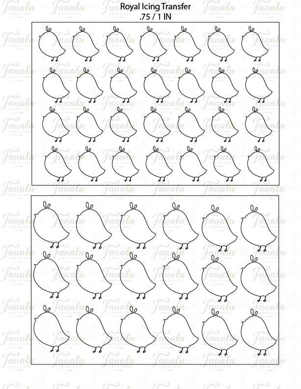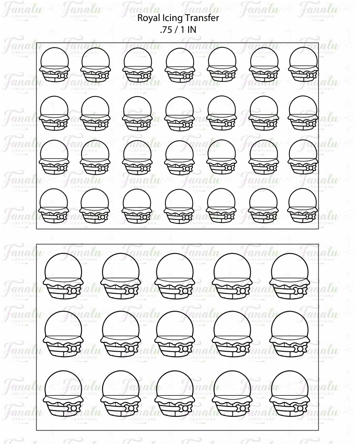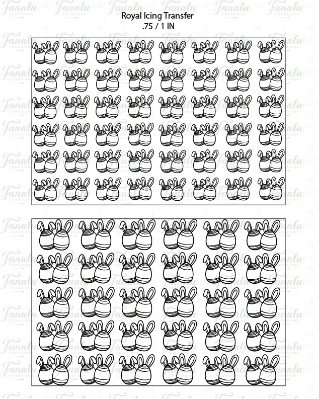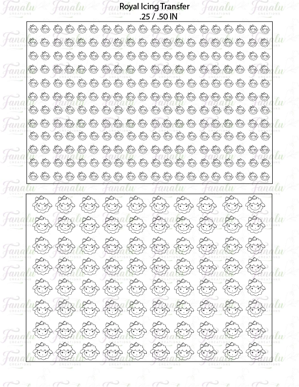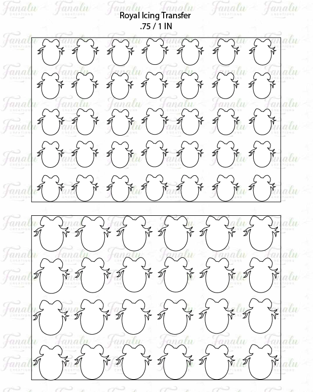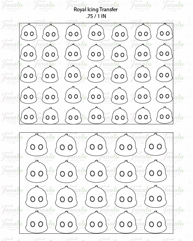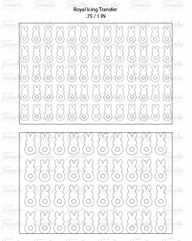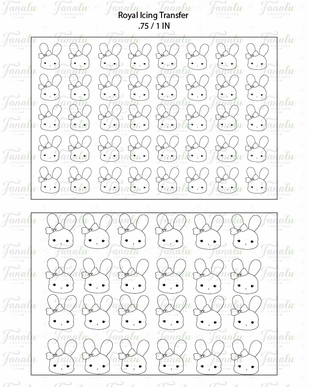 Printable PDF featuring elegant bow royal icing transfers in four sizes: 0.25”, 0.50”, 0.75”, and 1”. Perfect for mini cookies, cupcakes, macarons, cakesicles, and detailed cookie sets for baby showers, birthdays, Easter, and more. Simply print, place parchment or acetate on top, pipe with royal icing, allow to dry completely, and use when needed. Digital download only. No physical item included.